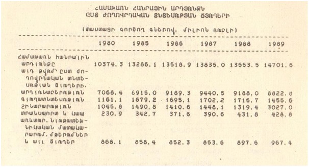 Ստորև հանրության ուշադրությանն եմ ներկայացնում Սովետական Հայաստանի պետության մայրամուտին վերաբերող վիճակագրական տեղեկությունները։ Այդ տեղեկությունները պերճախոս կերպով վկայում են, թե ինչ նյութական և հոգևոր արժեքներ են ստեղծվել և ինչ են ավերել ու ոչնչացրել Սովետական իշխանությունը վերացնողները։